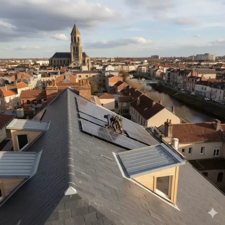 Poser des panneaux solaires sur votre toit à Valenciennes suit un plan précis. Notre spécialiste se déplace pour une visite technique gratuite, analyse vos besoins énergétiques réels et la configuration de votre toit.