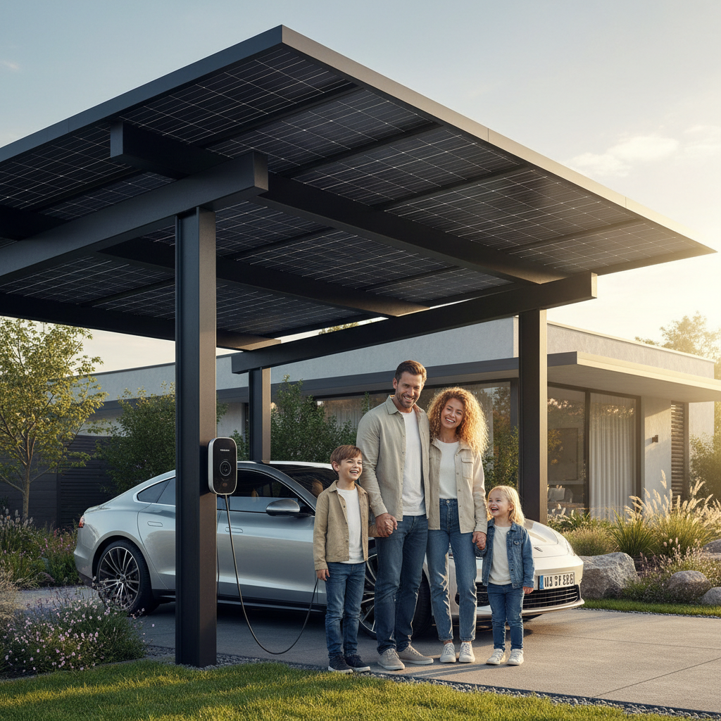 Le carport solaire se marie parfaitement avec l’essor des voitures électriques. Équipé d’une borne de recharge solaire, il permet de « faire le plein » directement avec l’énergie produite par vos panneaux. Une solution écologique et économique pour votre mobilité.